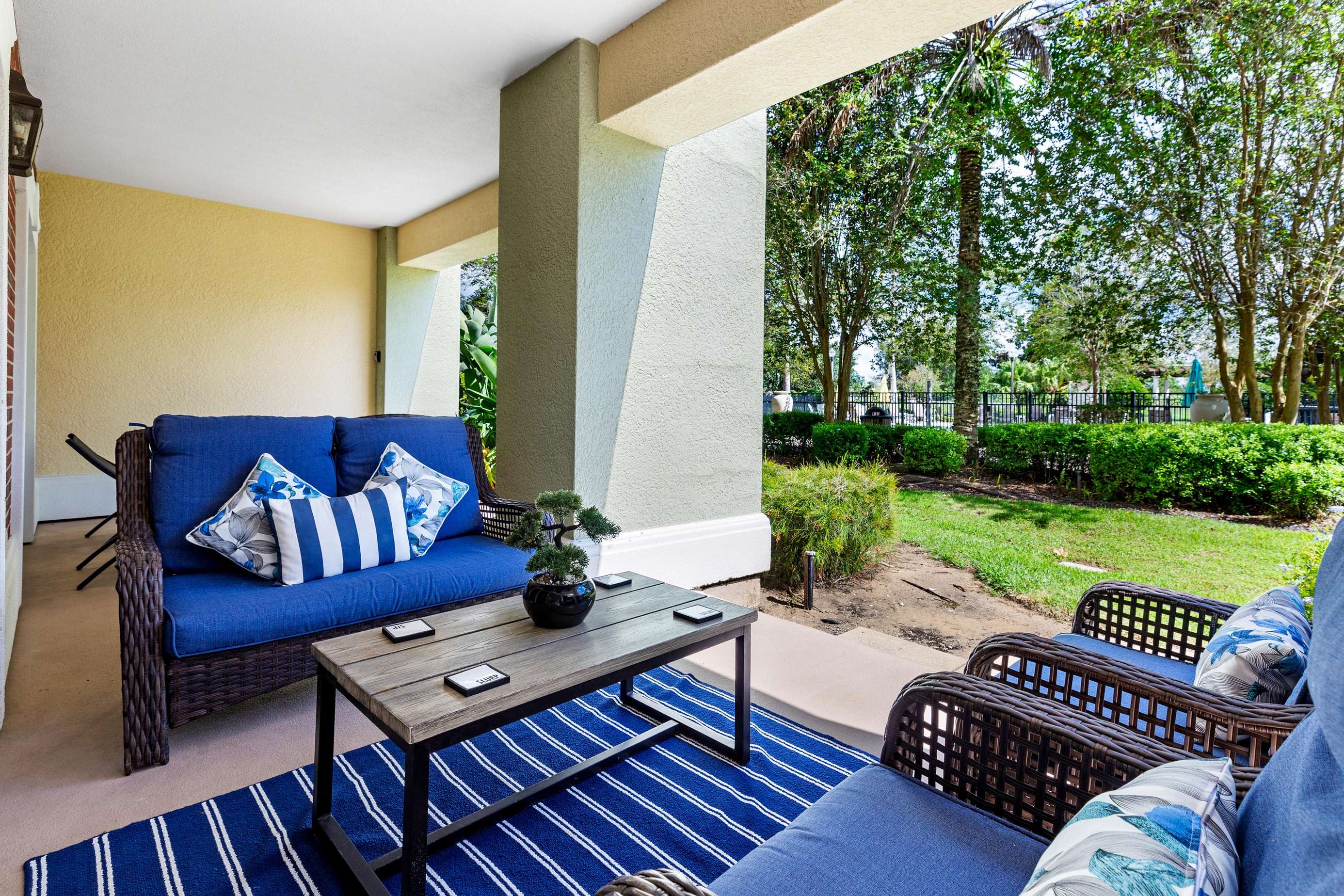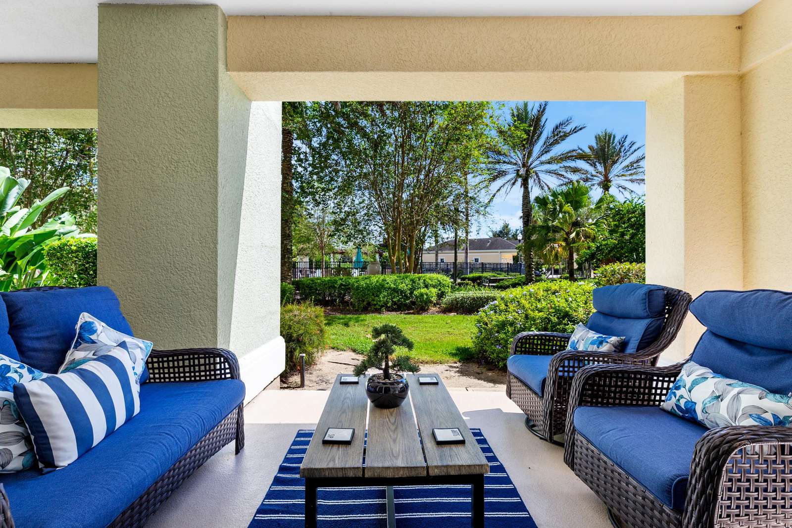 Private patio with easy access to lush grounds.
